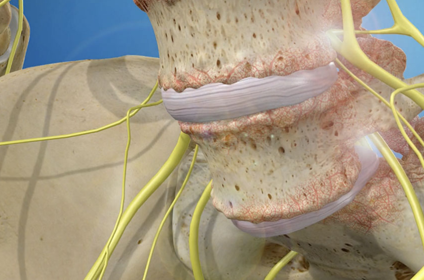 脊椎神经纤维的卡压,使疼痛从背部或四肢放射出来